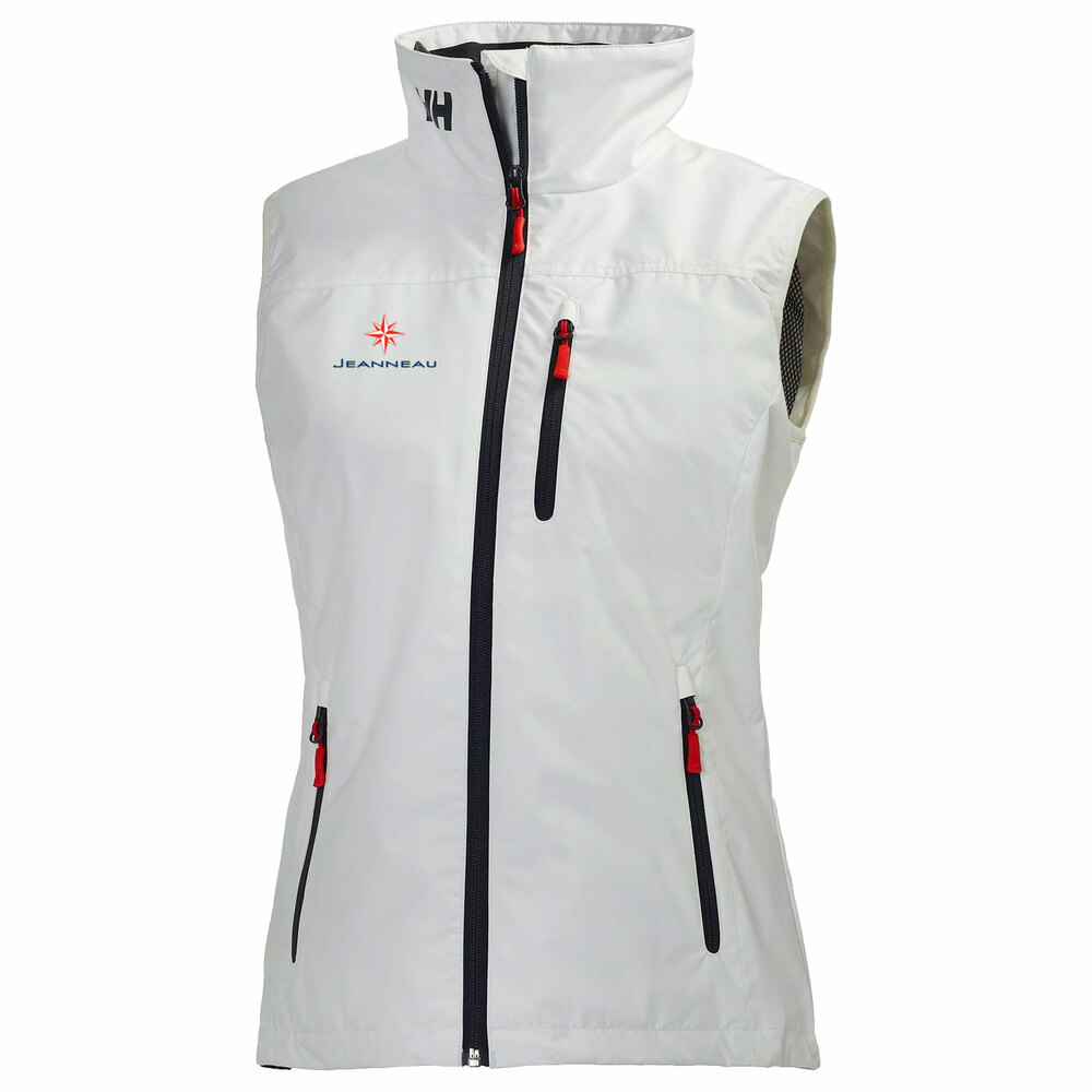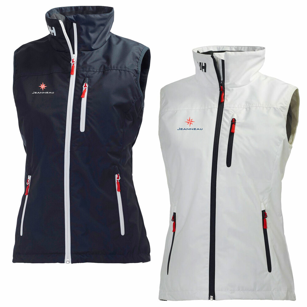 sku: JNS11A lightweight stylish sailing vest for men on windy summer days. It featues HELLY TECH® PROTECTION, adjustable bottom hem, chest pockets with zip, a hip length cut, quick-dry lining, Durable Water Repellency treatment (DWR), fully seam sealed, 2 ply fabric construction. It is waterproof, windproof, breathable, and features the Jeanneau logo on the right chest.